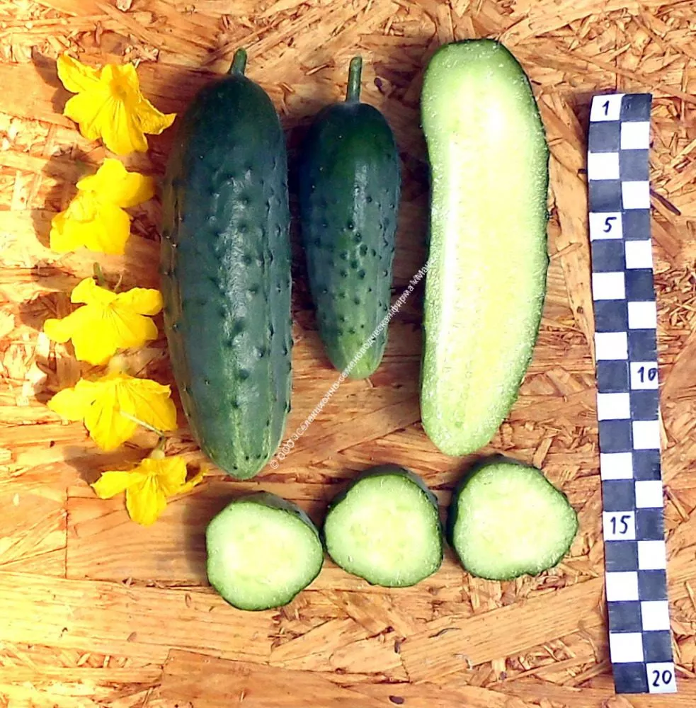 Универсальность назначения плодов подтверждается их размером и массой. Короткие (10-15 см), плотные зеленцы массой 90-130 граммов имеют оптимальное соотношение мякоти и семян, что обеспечивает хороший результат как в свежих нарезках, так и в банках после засолки.