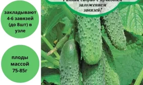 Листья имеют средний размер и классическую зеленую окраску. Ключевая особенность – преимущественно женский тип цветения. В пазухах листьев формируются цветочные бутоны, которые практически не дают пустоцветов (мужских цветков), а сразу развиваются в полезные завязи.