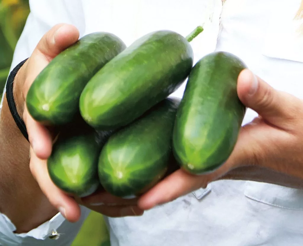 Но главное для дачника — вкус. Мякоть у плодов плотная, хрустящая, генетически лишенная горечи, с ярким, насыщенным огуречным ароматом. Семенная камера небольшая, семена в стадии технической зрелости (при длине 12-15 см) нежные и почти не ощущаются.