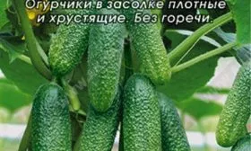 Плоды корнишонного типа, длиной 9-14 см и массой 100-110 г, имеют выровненную цилиндрическую форму. Их окрас — светло-зеленый с длинными светлыми полосами и средневыраженной пятнистостью — считается эталонным для засолочных огурцов и действительно придает урожаю товарный вид.