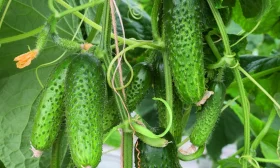 - Большим пальцем нажмите на плодоножку у основания плода, одновременно приподнимая сам огурец. Либо используйте секатор или острый нож.