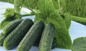 Такая энергия роста приводит к образованию длинных плетей и развитой листовой массы. Листья у гибрида типичные для огурца, среднего размера, классического зеленого цвета.
