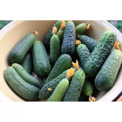 Классический вкус и хруст. Дегустационная оценка 4,4-5,0 баллов говорит о хороших вкусовых качествах, характерных для старых, «настоящих» сортов. Короткие (10-12 см), крупнобугорчатые зеленцы округло-цилиндрической формы имеют плотную, сочную мякоть без горечи.