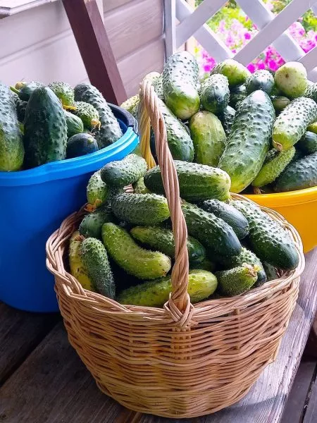 Лучшее время для работы – раннее утро или вечерние часы. В эту пору плоды максимально наполнены влагой, упруги и лучше переносят транспортировку. Собранные в полуденную жару огурцы быстрее вянут.