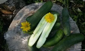 Плоды короткие, цилиндрические, длиной 12-15 см и массой около 100 г. Их темно-зеленая, гладкая поверхность без полос — характерный признак салатного типа. Генетическое отсутствие горечи сохраняется при любых условиях выращивания. Главное достоинство мякоти — исключительная плотность и хрусткость, которые не теряются даже при кратковременном хранении.