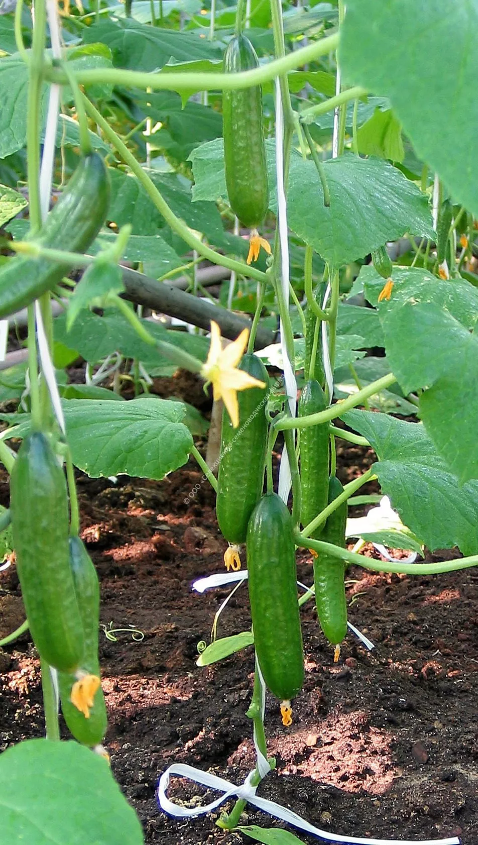 Далее, по всей длине главной плети, все образующиеся боковые побеги (пасынки) прищипывают после первого листа и одной завязи. Такой метод позволяет растению не тратить силы на излишнее ветвление, направляя ресурсы на налив коротких (12-15 см) плодов. Верхушку основного стебля прищипывают, когда он достигнет верха шпалеры.
