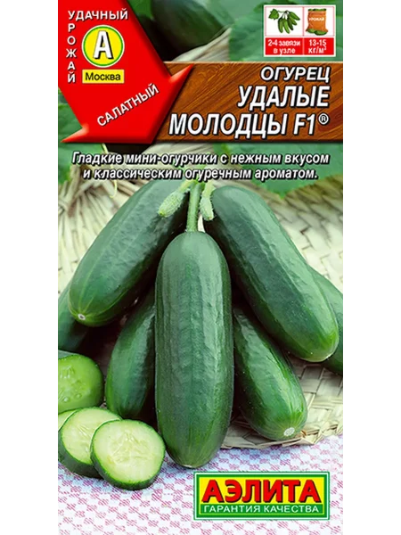 «Удалые молодцы» — это гибрид первого поколения, что всегда обозначается маркировкой F1 на пакете с семенами. Это означает, что для получения его уникальных качеств селекционеры скрестили две чистые родительские линии. Повторить его из собранных семян не получится — потомство потеряет все заявленные свойства, такие как выравненность плодов, устойчивость и тип завязи.