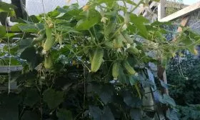 - Выше, примерно до середины стебля, боковые побеги (пасынки) прищипывают после первого листа, оставляя на каждом по одной завязи. Это помогает избежать загущения и обеспечивает качественное освещение и питание для формирующихся корнишонов.