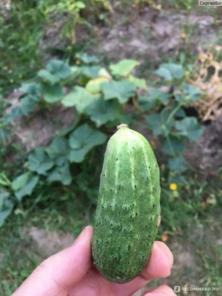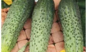 Плоды классического вида: короткие (10-12 см), с темно-зеленой окраской и выраженной крупнобугорчатой поверхностью. Такой размер и структура делают их исключительно удобными для цельноплодного консервирования. Длительный период отдачи урожая, который при благоприятных условиях может продолжаться с начала июля до конца августа, обеспечивает постоянное наличие свежих огурцов на столе.
