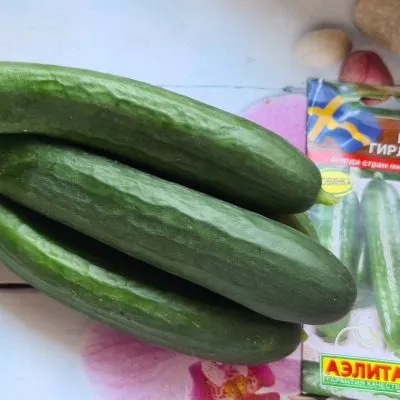 Внешний вид плодов делает их идеальными для свежего потребления. Длинные, ровные, с глянцевой темно-зеленой кожицей, они имеют классический «салатный» вид и отлично смотрятся в нарезке.