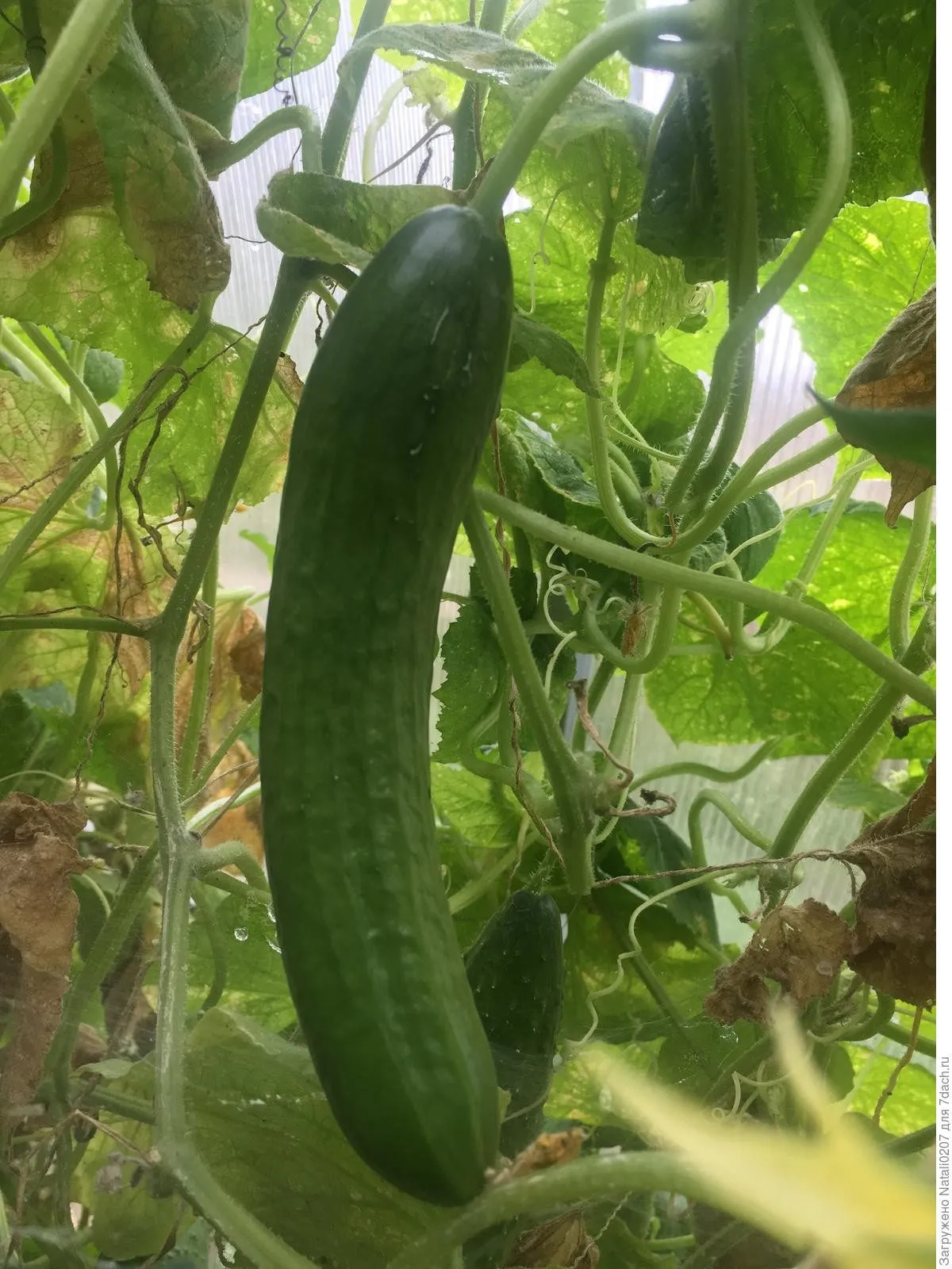 Плоды отличаются выравненностью и имеют длину 18-20 см, что соответствует заявленным характеристикам. Форма у них цилиндрическая, часто с легким изящным изгибом, без перетяжек. Окраска насыщенная, темно-зеленая, равномерная по всей длине, без доходящих до середины плода светлых полос или крупных пятен.