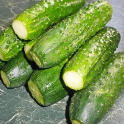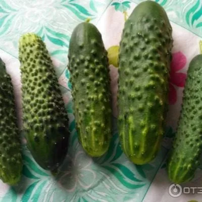Внешний вид плодов очень характерный и запоминающийся. Огурцы короткие, цилиндрической формы, длиной 11-13 см и массой 130-150 граммов. Окраска зеленая, с короткими светлыми полосками. Поверхность покрыта крупными, частыми бугорками. Именно такая «агрессивная» бугристость часто ассоциируется у огородников с отличными засолочными качествами.