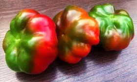 Плоды имеют характерную плоскоокруглую, слегка приплюснутую форму, что является их визитной карточкой. Несмотря на классификацию как мелкие, их масса в 80-90 граммов является вполне солидной, а отдельные перцы могут достигать 100 граммов. Такая форма и размер делают их исключительно удобными для фарширования — они устойчиво стоят на поверхности и хорошо держат начинку.
