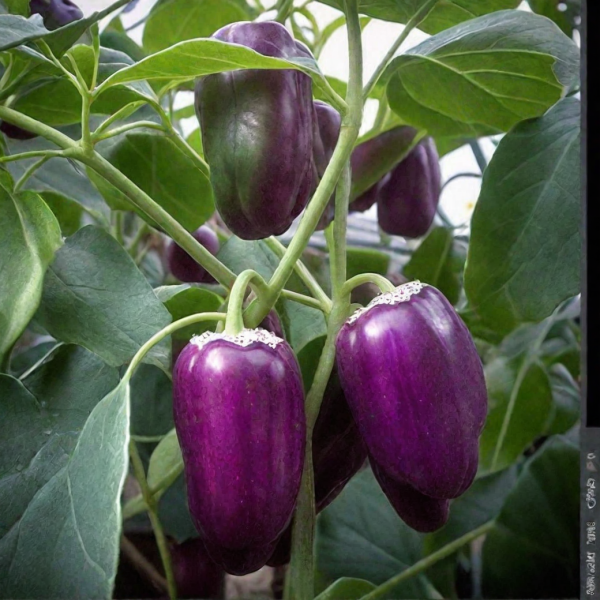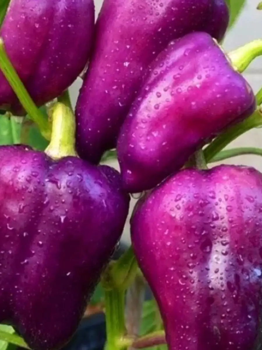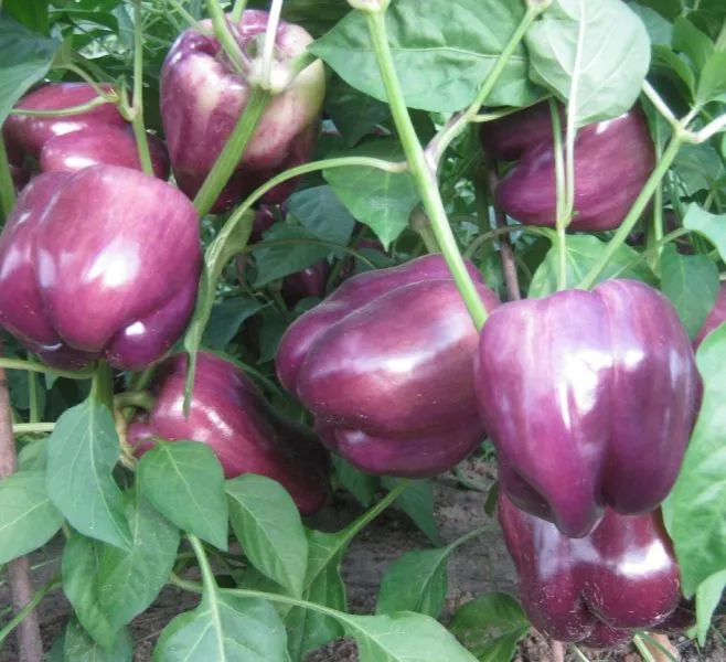 Плоды имеют классическую кубовидную форму с хорошо выраженной ребристостью, что является признаком мясистости. Их главная особенность — насыщенная фиолетовая окраска в фазе технической спелости. В этот момент они уже достигают крупного размера, а их стенки набирают толщину, делая перец пригодным для сбора и использования.
