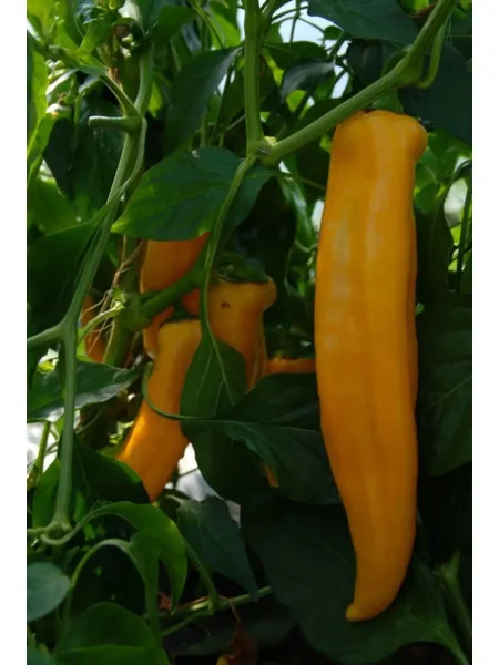 Настоящее визуальное преображение происходит с окраской. В фазе технической спелости, когда плод уже сформирован, но еще не набрал полную сахаристость, он обладает глубоким темно-зеленым, почти изумрудным цветом. Полное созревание сопровождается резкой и яркой трансформацией: перец становится насыщенного, солнечного желтого цвета. Одновременное присутствие на кусте плодов разной степени зрелости создает очень декоративный двухцветный эффект.