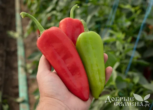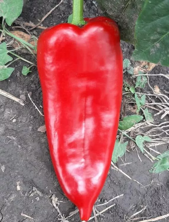 Плоды завязываются кистями, что характерно для многих гибридов с индетерминантным типом роста. Главной отличительной чертой является их форма — узкоконусовидная. Перчики вытянутые, с заостренным кончиком, напоминающие изящный стручок или клюв. Из-за такой вытянутой формы стенки (перикарпий) плода, хотя и сочные, не бывают очень толстыми.