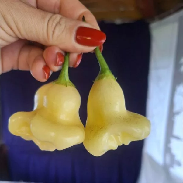 Главная отличительная черта сорта — его плоды. Они относятся к категории мелких, их масса стабильно составляет 25-30 граммов. Форма не имеет прямых аналогов среди стандартных конусовидных или призмовидных перцев. Каждый плод напоминает изящный цветок с двумя, а чаще тремя крупными, сросшимися у основания «лепестками». Альтернативное сравнение — миниатюрный колокольчик.