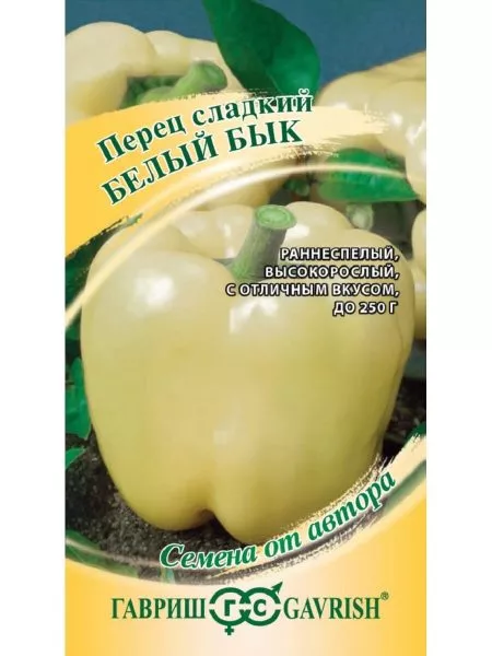 Название «Белый бык» напрямую связано с уникальной фазой технической спелости плодов. В этот период, когда перец уже достиг своего максимального размера и его можно срывать для употребления в пищу или хранения, он приобретает необычную светло-желтую или кремово-белую окраску.