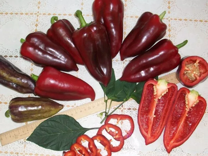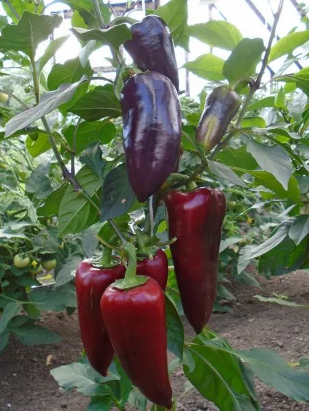 Окраска меняется по мере созревания. В технической стадии, когда плоды уже достигли размера и их можно снимать для дозаривания или использования в кулинарии, они окрашены в темно-зеленый, почти изумрудный цвет. При полном созревании на кусте перцы равномерно окрашиваются в ярко-красный цвет без пятен или зеленых плечиков.