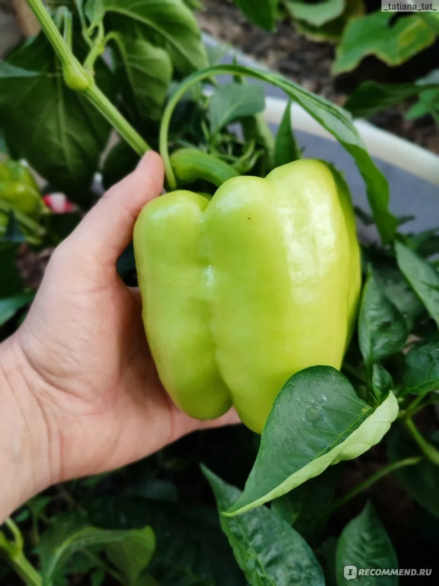 Форма плодов кубовидная, часто с заметной ребристостью у плодоножки. Динамика изменения окраски представляет особый интерес. В фазе технической спелости, когда перец достиг размеров, но семена еще не окончательно созрели, кожица приобретает необычный зеленовато-белый, молочный оттенок. Это состояние оптимально для сбора урожая для длительной транспортировки или хранения. При достижении биологической спелости на кусте плоды равномерно окрашиваются в яркий, насыщенный желтый цвет.