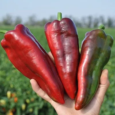 Плоды имеют классическую удлиненно-конусовидную форму, что удобно для фарширования и нарезки. Окраска меняется с темно-зеленой в технической спелости на насыщенно-красную при полном биологическом созревании. Сорт считается универсальным: плоды с хорошим вкусом подходят как для употребления в свежем виде, так и для всех видов консервирования — заморозки, лечо, а также для запекания и фарширования.