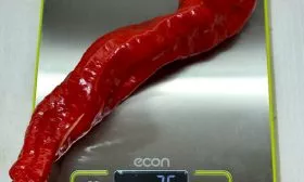 Главная отличительная черта плодов — исключительная толщина перикарпия (стенки). Она может достигать 6-8 мм. Такая мясистость напрямую связана с выдающимися вкусовыми качествами: очень сладким вкусом без кислинки. Плоды не относятся к гигантским, их средняя масса составляет 100-150 граммов, что в сочетании с толстой стенкой делает их идеально сбалансированными для фарширования и свежих салатов.