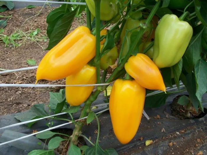 Куст с одновременно висящими на нем плодами разного цвета — от кремового до ярко-желтого — выглядит очень декоративно. Эта особенность, сочетающаяся с крупным размером перцев, делает сорт заметным и узнаваемым на любой грядке или в теплице.