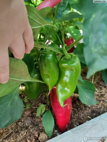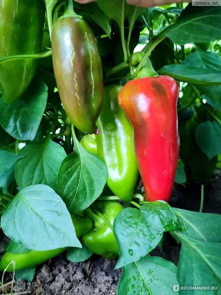 Окраска меняется по мере созревания: в технической спелости перцы имеют глубокий темно-зеленый, почти черноватый оттенок, который затем переходит в густой, насыщенный темно-красный цвет. Поверхность зрелого плода приобретает выраженный глянец.