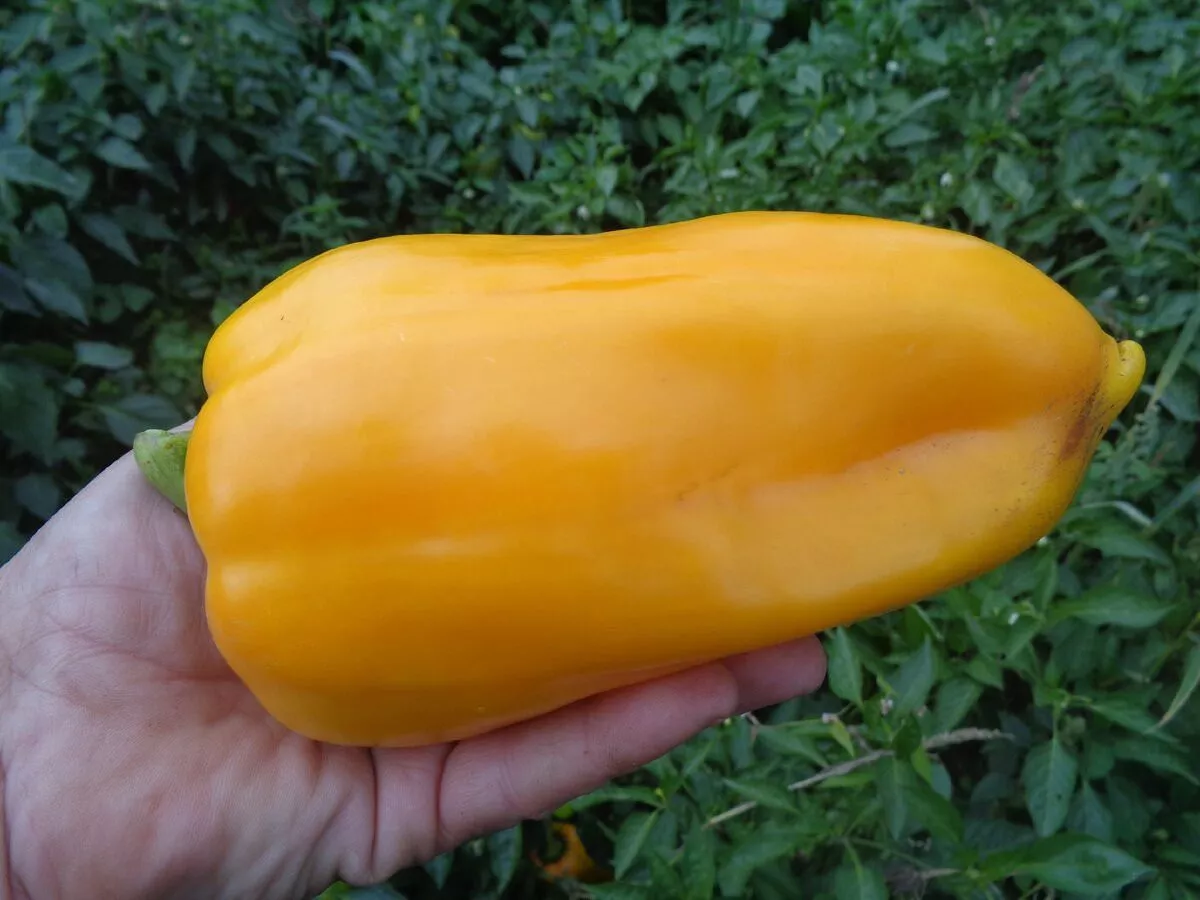 Плоды имеют классическую конусовидную форму, часто с легкой изогнутостью и выраженной ребристостью в области прикрепления к плодоножке. Их масса в 200-350 граммов – объективный показатель, который достигается за счет очень толстых, мясистых стенок (перикарпия). Толщина стенок у полностью созревших перцев может достигать 8-10 мм, что обеспечивает не только внушительный вес, но и отличную сочность, хрустящую текстуру мякоти.