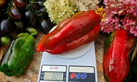Плоды – главный козырь сорта. Их кубовидная форма часто приближается к призмовидной, стенки очень толстые, мясистые. В технической спелости они имеют насыщенный темно-зеленый цвет, а при полном биологическом созревании становятся глубоко-красными.