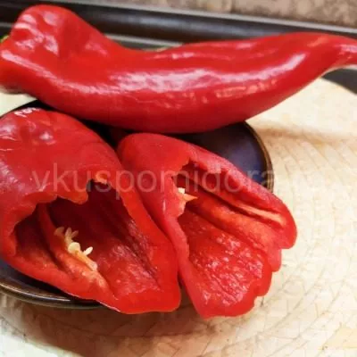 Главное достоинство этого сорта — его выдающиеся вкусовые качества. Вкус полностью вызревших плодов характеризуется как отличный, сладкий, без намека на горечь. Он формируется благодаря высокому содержанию сахаров и сочной, мясистой мякоти с толщиной стенок, типичной для крупноплодных сортов. Аромат насыщенный, классический перечный, что особенно ценится в свежих блюдах.