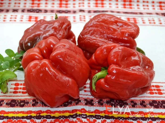Плоды являются главной отличительной чертой сорта. Их форма соответствует описанию «кубовидная», но с уточнением: перцы часто имеют слегка удлиненную, призмовидную форму с четко выраженными тремя или четырьмя гранями. Плодоножка прочно крепится к растению, чашечка (плодовая «шляпка») среднего размера, не стягивает плод.
