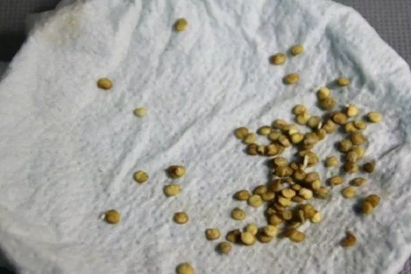 - на 2-3 суток поместите зерна на ватный диск и смочите небольшим количеством воды;