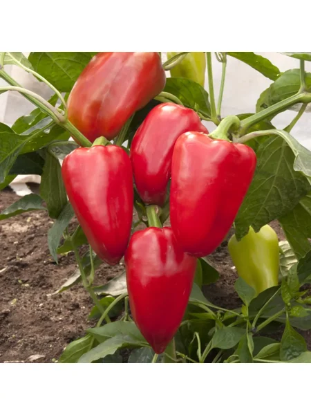Плоды завязываются и располагаются поникло. Это не признак болезни или увядания, а биологическая особенность многих сортов сладкого перца, связанная с тяжестью плода. Форма соответствует заявленной — это выровненный, удлиненно-конусовидный перец с гладкой, глянцевой кожицей. Плодоножка прочно крепится к плоду, что минимизирует риск осыпания.