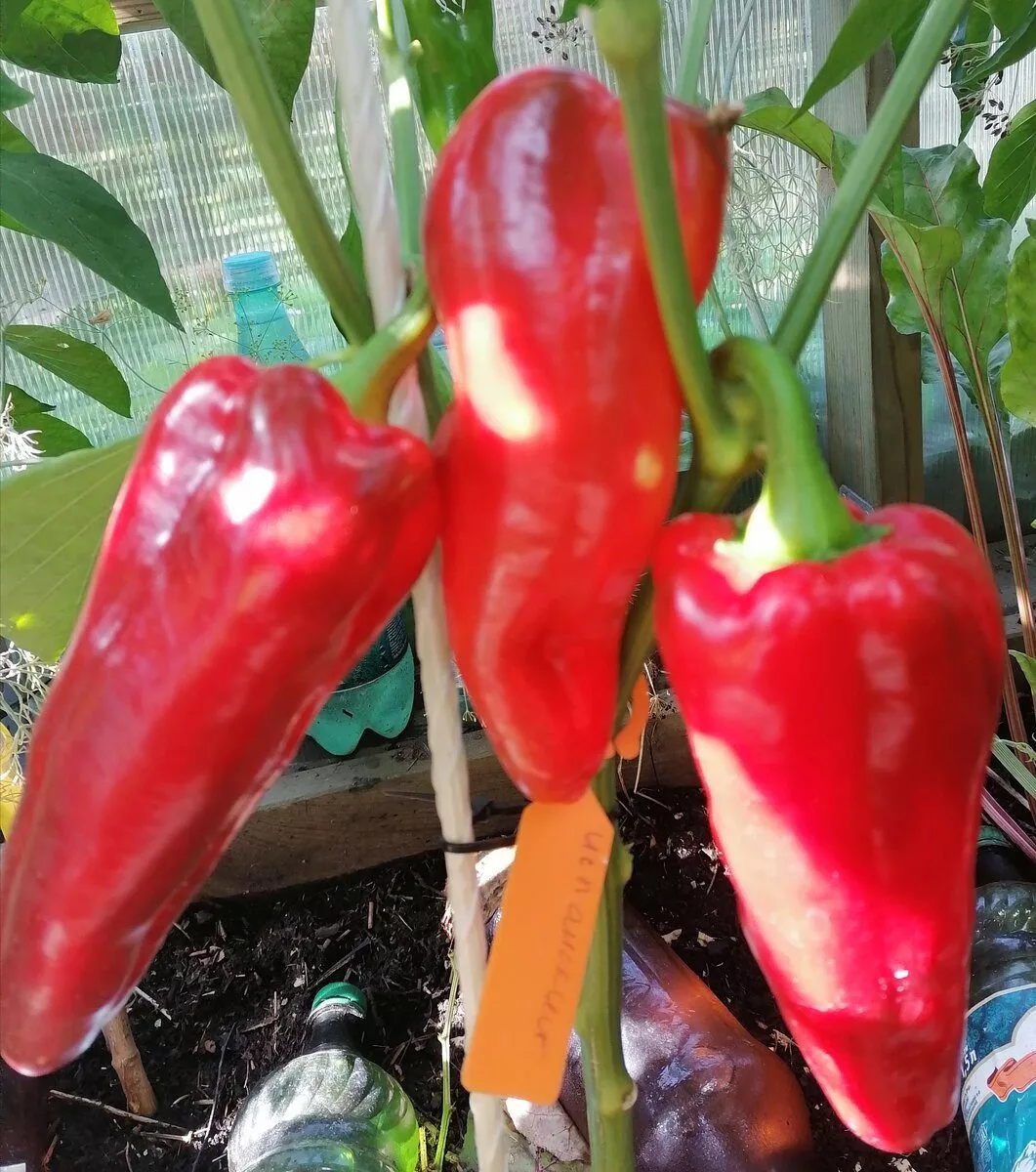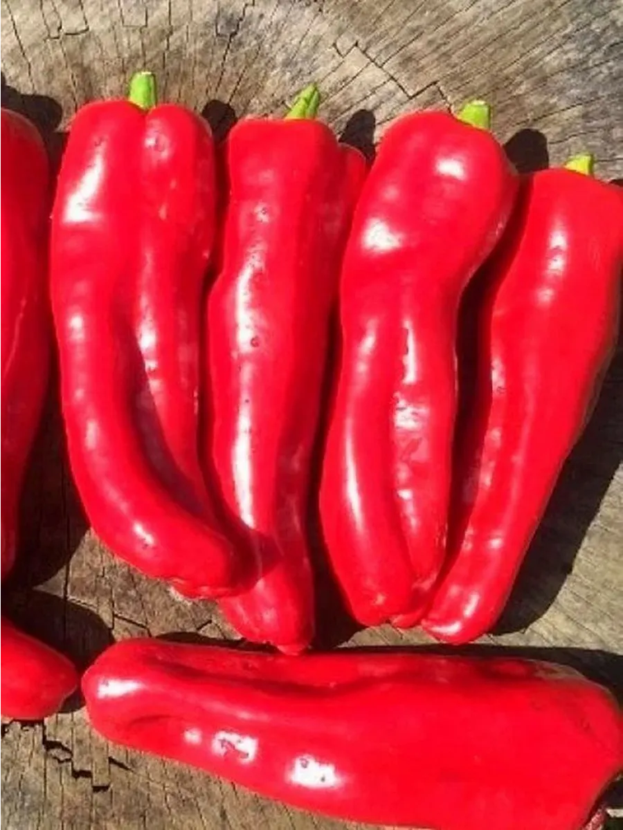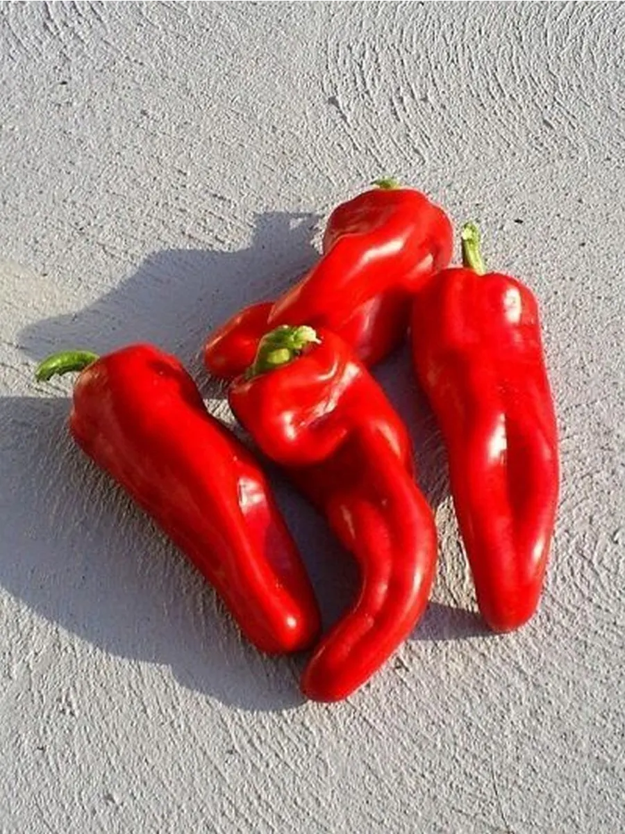 Вытянутая конусовидная форма делает эти перцы исключительно удобными для нарезки ровными кольцами или соломкой, а также для фарширования — они устойчиво стоят на плоскости. Гладкая, прочная кожица и мясистые стенки хорошо держат форму при термической обработке, будь то тушение, запекание или консервирование.
