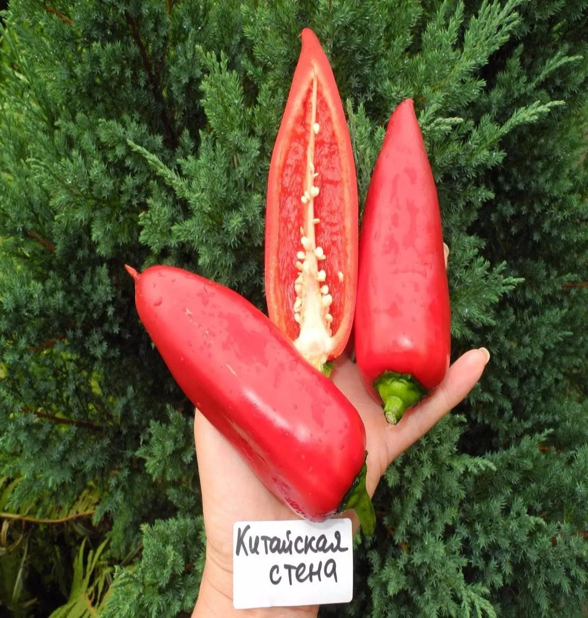 Название сорта «Китайская стена» — это не просто образное сравнение. Оно напрямую описывает ключевую особенность плодов: их внушительный размер и удлиненно-конусовидную, часто слегка ребристую форму, которая визуально ассоциируется с массивными блоками. Селекционная работа была направлена на закрепление именно этих качеств — получение крупного, мясистого перца с классическим сладким вкусом.