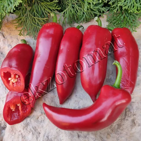Плоды — ключевая отличительная черта этого сорта. Их форма соответствует описанию «конусовидная», но с важной деталью: у самого основания, в области прикрепления к плодоножке, часто наблюдается выраженная ребристость. Это придает перцам устойчивость и характерный «основательный» вид.