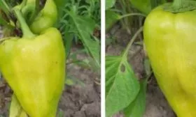 - Вершинная гниль. Это физиологическое нарушение, а не инфекция, часто поражающее именно крупноплодные перцы. Проявляется как темное, сухое, вдавленное пятно на верхушке плода. Основная причина – дефицит кальция, который усугубляется неравномерным поливом и пересыханием почвы. Для профилактики необходим стабильный полив без перепадов «засуха-переувлажнение». При первых признаках эффективны внекорневые подкормки 0.2% раствором кальциевой селитры.