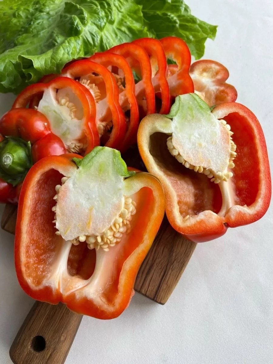 - Употребление в свежем виде. Сладкий вкус и крупный размер делают перец идеальным для свежих салатов и нарезки. Мясистые стенки отлично держат форму при фаршировании любыми начинками.