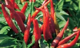 | Форма и окраска плода | Конусовидная, красная | Классическая вытянутая форма с заостренным кончиком. В биологической спелости куст становится очень живописным, густо усыпанным ярко-красными «факелами». |