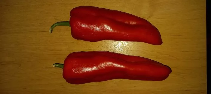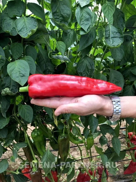 Визуальная идентификация сорта не составит труда благодаря уникальной форме плодов. Узкоконусовидные, часто слегка изогнутые перцы резко контрастируют с более распространенными кубовидными или призмовидными гибридами. Такая «хоботовидная» форма не просто декоративна – она способствует лучшей инсоляции и более равномерному созреванию.
