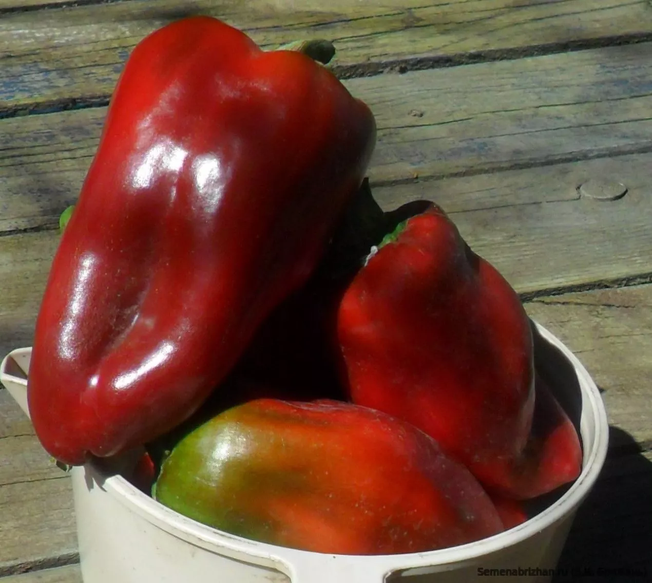 Главная гордость сорта — его плоды. Они имеют выраженную удлиненную трапециевидную форму, напоминающую призму с вытянутым носиком. Такая геометрия не только придает перцу узнаваемый вид, но и делает его очень удобным для нарезки кольцами или кубиками.