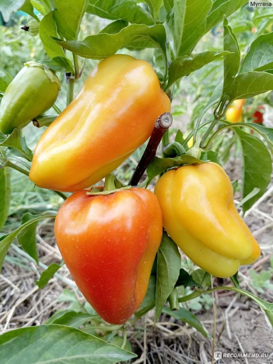 | Плоды имеют товарный вид и хорошо хранятся. | Требует стандартного для перца внимания к поливу, не терпит пересыхания почвы. | Форма плода — классический конус или призма. |
