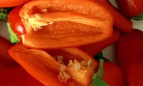 - Свежие салаты и закуски. Яркие красные перчики служат вкусным украшением и полноценным ингредиентом. Их удобно фаршировать мягкими сырами, использовать в канапе или добавлять в овощные нарезки.