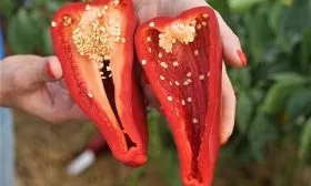 Сорт позиционируется как крупноплодный, и это подтверждается максимальной массой плодов, достигающей 400 граммов. Такой вес для ультрараннего перца является значительным преимуществом. Ключевой параметр, напрямую влияющий на кулинарные качества, — толщина перикарпия (стенки плода). У Любовой ладони стенки толстые и мясистые, что гарантирует высокую сочность, насыщенный вкус и отличный выход готовой продукции после запекания или фаршировки.