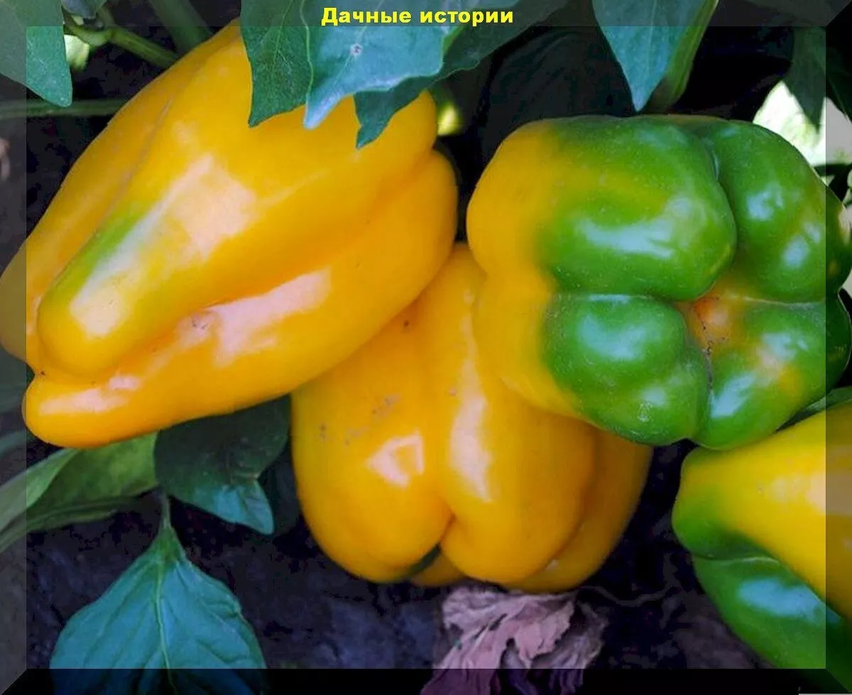 Поверхность плода глянцевая, с хорошо заметной ребристостью. В фазе технической спелости, когда перец уже можно снимать для дозаривания или использования, его окраска темно-зеленая. По мере перехода к биологической спелости цвет меняется на насыщенный желтый. Этот процесс часто происходит неравномерно: сначала желтеют участки у плодоножки или на стороне, получавшей больше солнца.