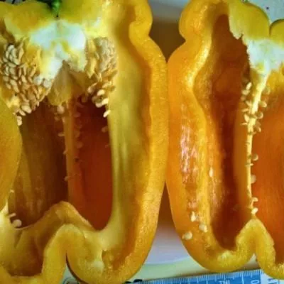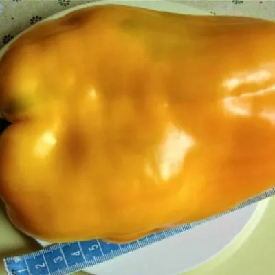 В фазе технической спелости перцы насыщенно-зеленые с глянцевой поверхностью. При достижении биологической спелости они кардинально меняют цвет, становясь темно-желтыми, с насыщенным, почти золотисто-оранжевым оттенком и интенсивным блеском.