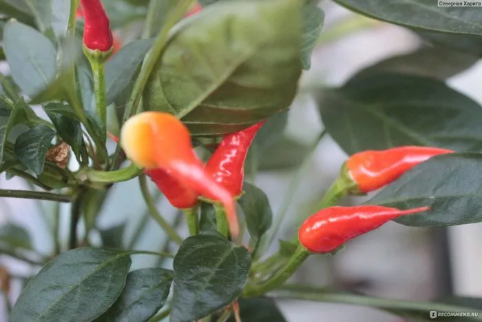 По мере перехода к биологической спелости начинается постепенное покраснение. Часто процесс идет неравномерно, от кончика к плодоножке, благодаря чему на одном кусте одновременно присутствуют стручки разных оттенков: белые, кремовые, розоватые и ярко-красные. Такой живой градиент делает растение невероятно нарядным и декоративным на протяжении нескольких недель.