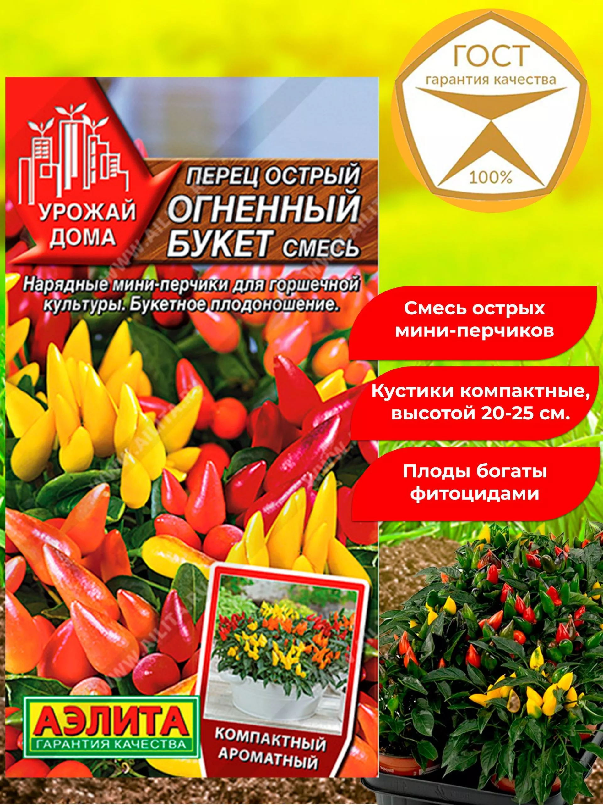 Низкорослость и высокая декоративность кустов с созревающими плодами разного цвета позволяют выращивать эту смесь не только на грядке, но и в контейнерах на балконе или террасе. Это дает возможность всегда иметь под рукой свежий острый перец для кулинарных нужд.