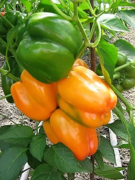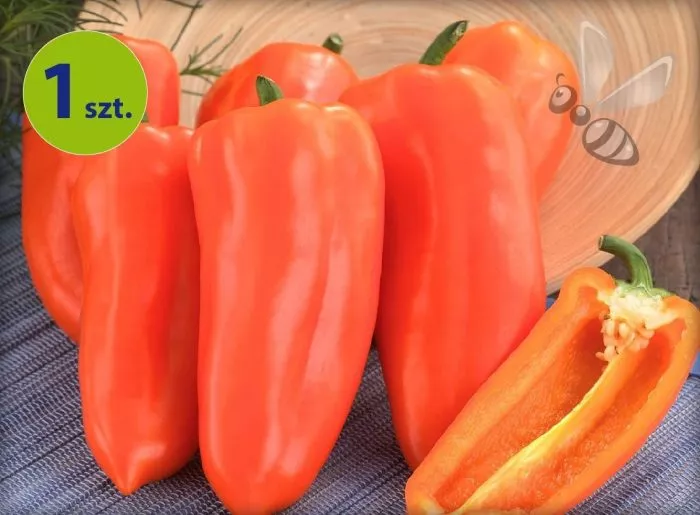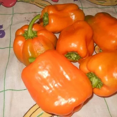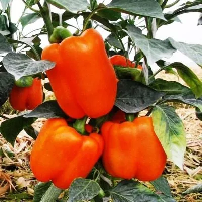 Плоды имеют классическую кубовидную форму, часто с легким удлинением и выраженной ребристостью у плодоножки. Их главная отличительная черта – яркая и стабильная окраска. В фазе технической спелости перцы насыщенно-зеленые, а при полном биологическом созревании равномерно окрашиваются в густой оранжевый цвет без зеленых пятен.